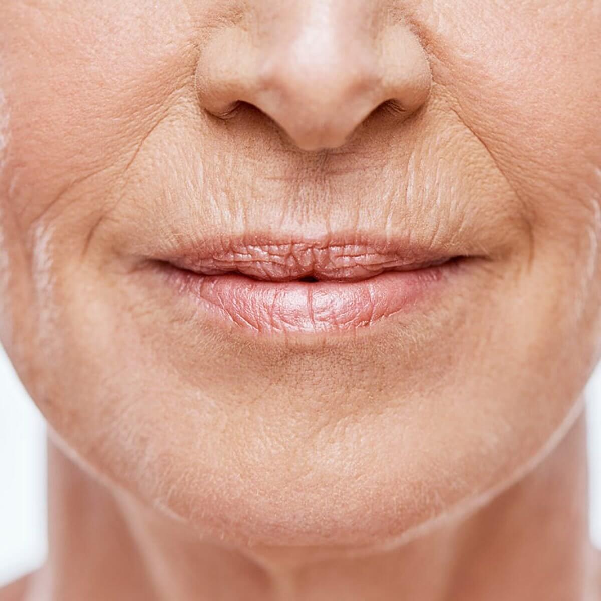 Les rides de péri buccales font parties du processus de vieillissement naturel, marqué par une perte de collagène et d'élastine, avec une peau plus fine, fragilisée par l'exposition au tabac, au soleil, à la pollution, au stress oxydatif, et soumise à la contraction la contraction répétée et inévitable des muscles de la bouche.